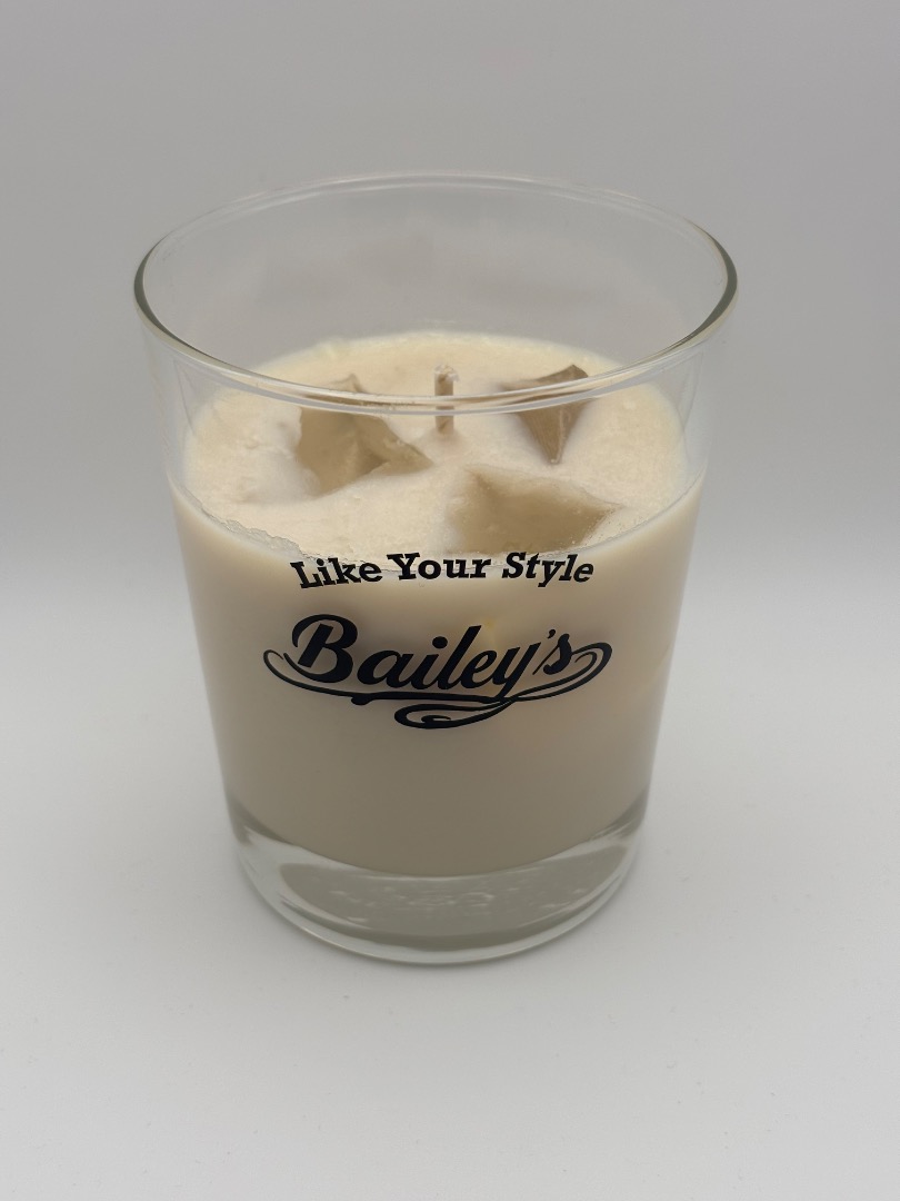 Deze Bailey's kaars is gemaakt van sojawas met ijsklonten van gelwas en heeft de geur van vanille en chocolade.